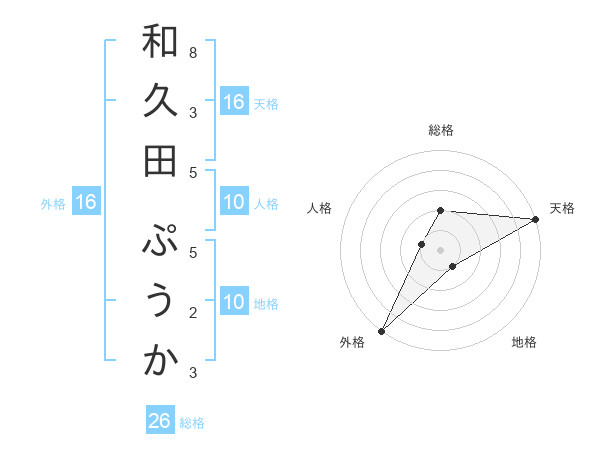 和久田 ぷうかさんの天格は16画の5点!