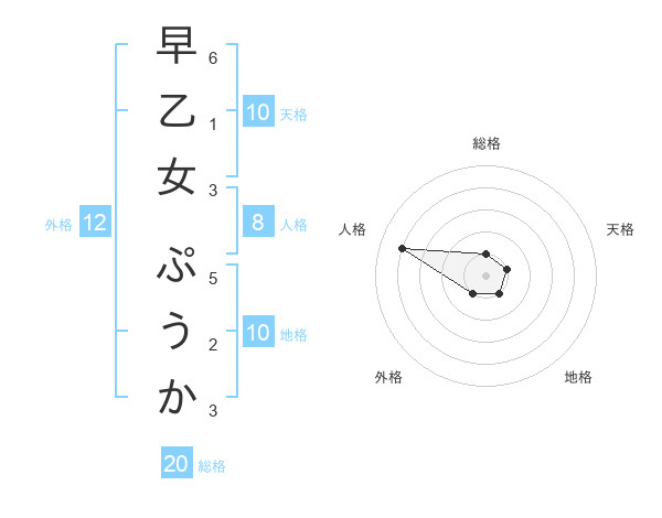 早乙女 ぷうかさんの総格は20画の1点!