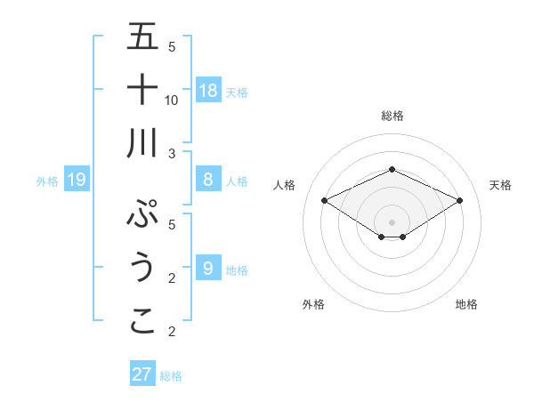 五十川 ぷうこさんの総格は27画の3点!