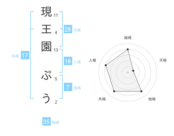 現王園 ぷうさんを姓名の画数から五運を鑑定
