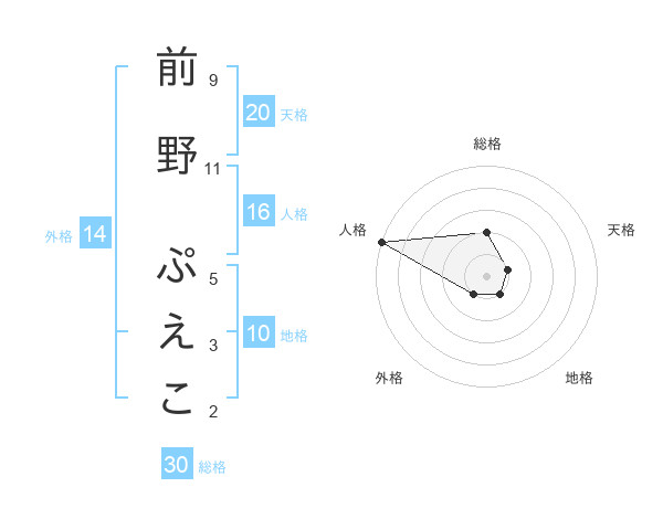 前野 ぷえこさんを姓名の画数から五運を鑑定