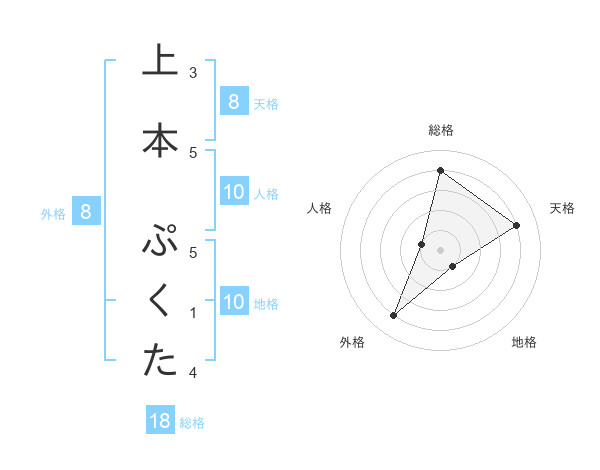 上本 ぷくたさんを姓名の画数から五運を鑑定