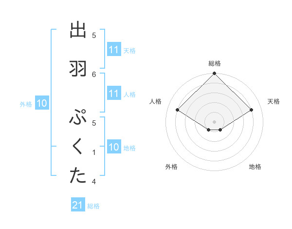 出羽 ぷくたさんの総格は21画の5点!