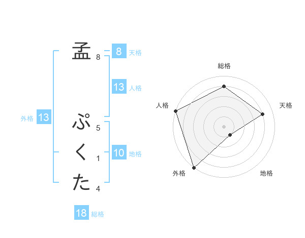 孟 ぷくたさんを姓名の画数から五運を鑑定