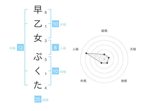 早乙女 ぷくたさんを姓名の画数から五運を鑑定