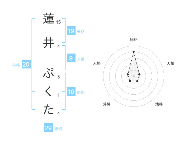 蓮井 ぷくたさんを姓名の画数から五運を鑑定