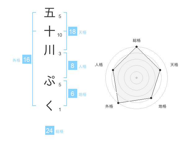 五十川 ぷくさんを姓名の画数から五運を鑑定
