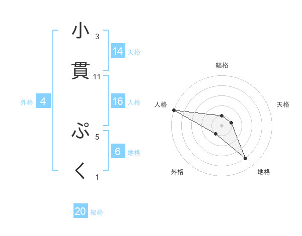 小貫 ぷくさんを姓名の画数から五運を鑑定