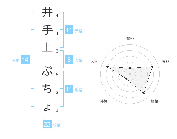井手上 ぷちょさんを姓名の画数から五運を鑑定