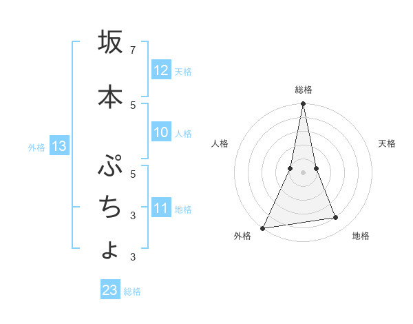 坂本 ぷちょさんを姓名の画数から五運を鑑定