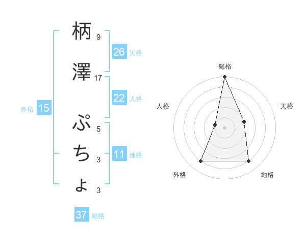 柄澤 ぷちょさんを姓名の画数から五運を鑑定