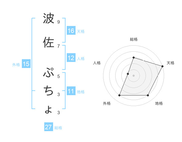 波佐 ぷちょさんを姓名の画数から五運を鑑定