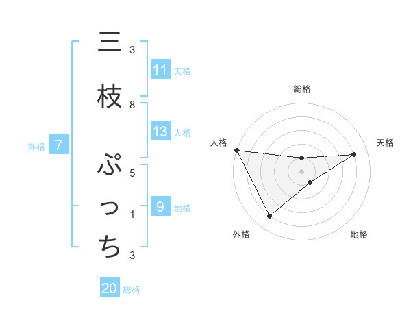 三枝 ぷっちさんの総格は20画の1点!