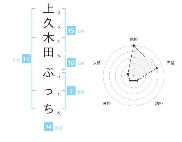 上久木田 ぷっちさんを姓名の画数から五運を鑑定