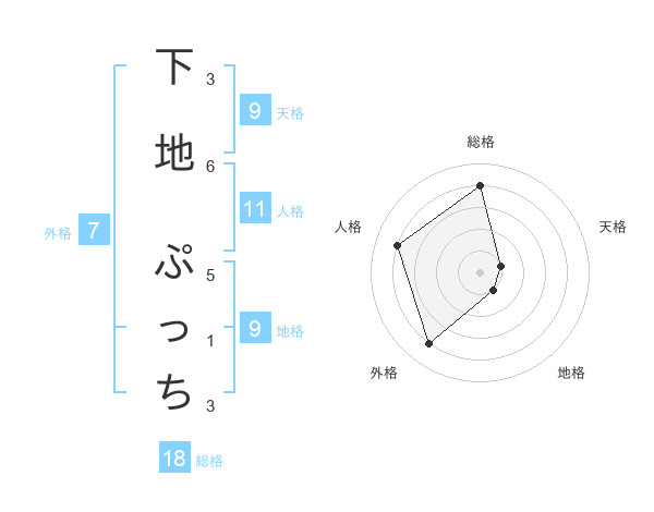 下地 ぷっちさんを姓名の画数から五運を鑑定