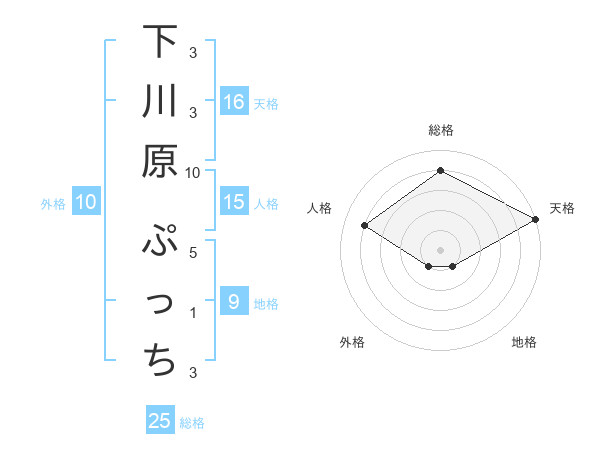 下川原 ぷっちさんを姓名の画数から五運を鑑定