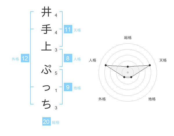 井手上 ぷっちさんを姓名の画数から五運を鑑定