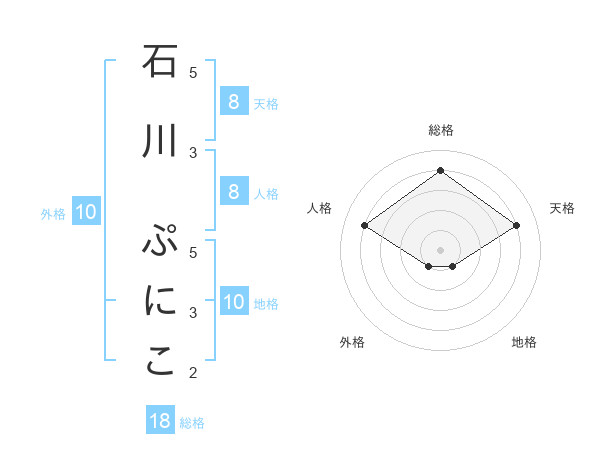 石川 ぷにこさんを姓名の画数から五運を鑑定