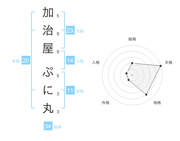 加治屋 ぷに丸さんの天格は23画の5点!