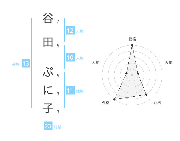 谷田 ぷに子さんを姓名の画数から五運を鑑定