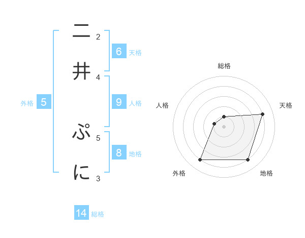 二井 ぷにさんを姓名の画数から五運を鑑定