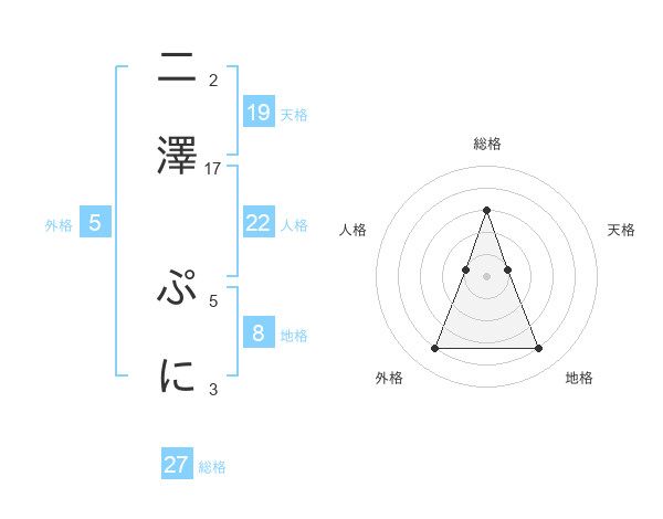 二澤 ぷにさんを姓名の画数から五運を鑑定