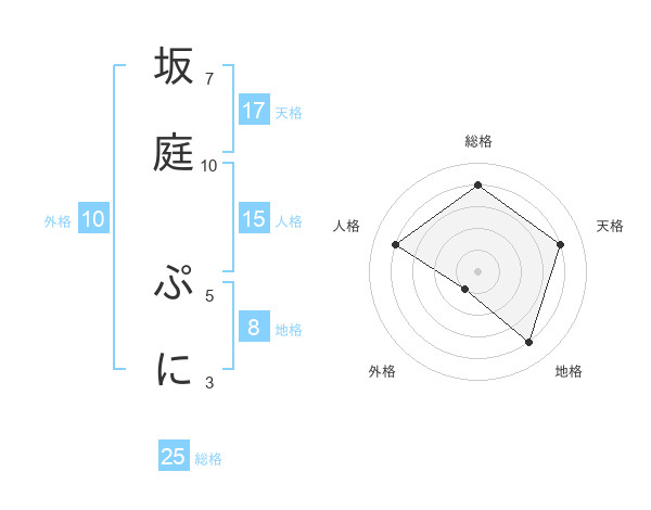 坂庭 ぷにさんを姓名の画数から五運を鑑定