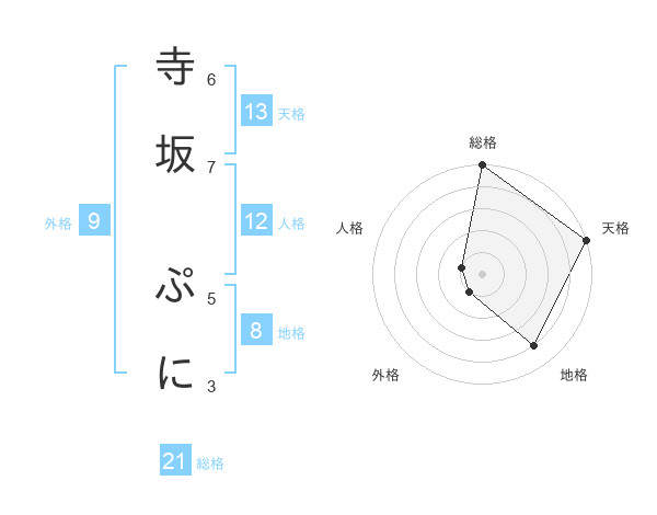 寺坂 ぷにさんの天格は13画の5点!