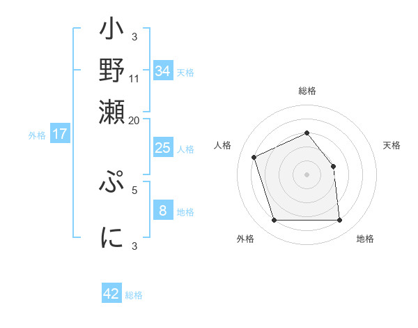 小野瀬 ぷにさんを姓名の画数から五運を鑑定