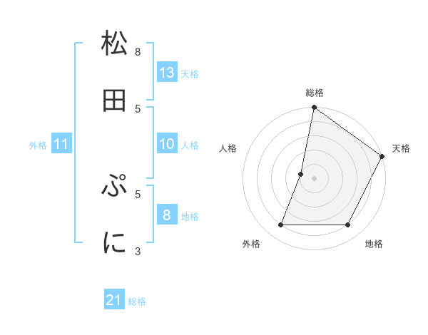 松田 ぷにさんの総格は21画の5点!