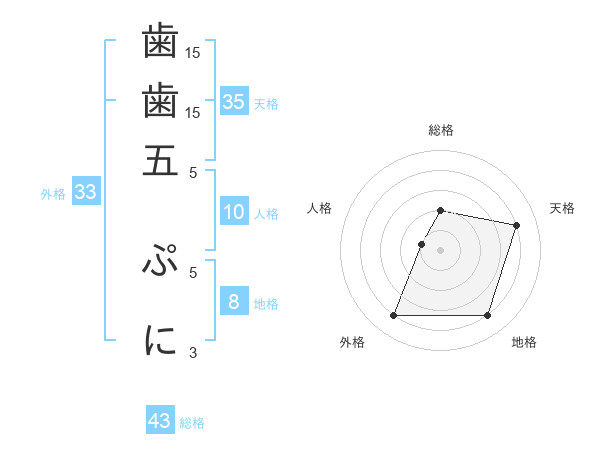 歯歯五 ぷにさんの外格は33画の4点!