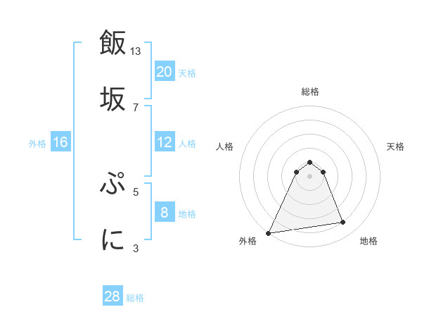 飯坂 ぷにさんを姓名の画数から五運を鑑定