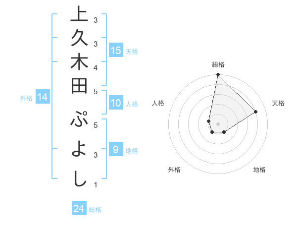 上久木田 ぷよしさんを姓名の画数から五運を鑑定