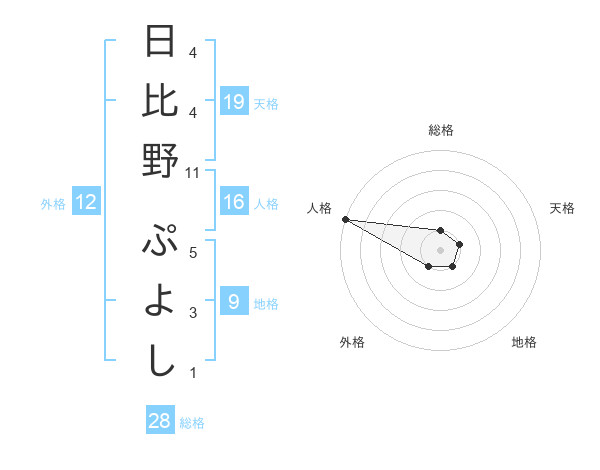 日比野 ぷよしさんの総格は28画の1点!