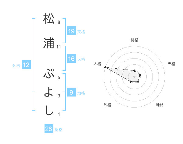 松浦 ぷよしさんを姓名の画数から五運を鑑定