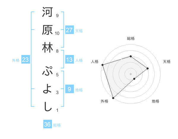 河原林 ぷよしさんの外格は23画の5点!
