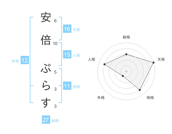 安倍 ぷらすさんを姓名の画数から五運を鑑定
