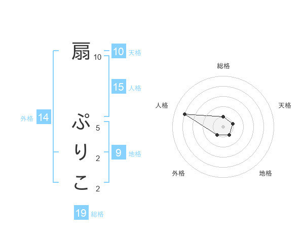 扇 ぷりこさんを姓名の画数から五運を鑑定