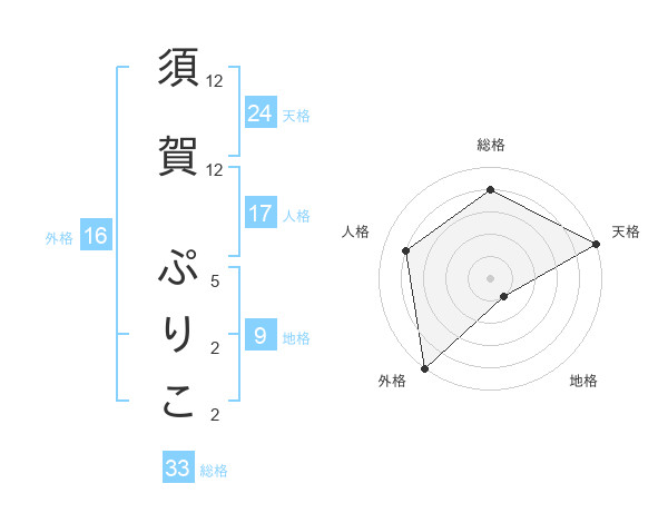 須賀 ぷりこさんを姓名の画数から五運を鑑定