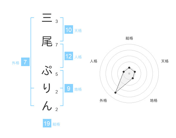 三尾 ぷりんさんを姓名の画数から五運を鑑定