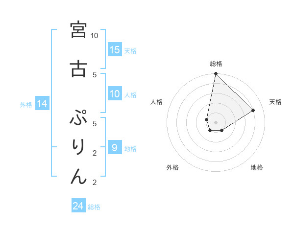 宮古 ぷりんさんを姓名の画数から五運を鑑定