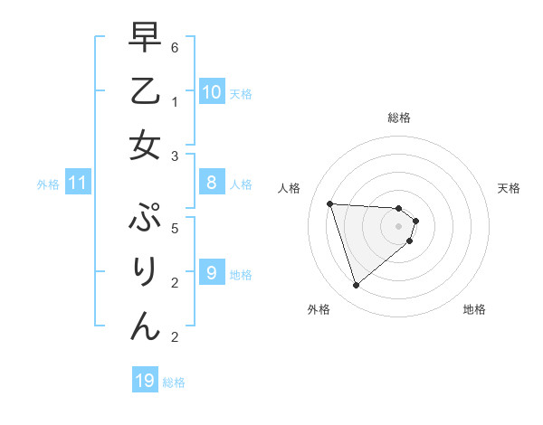 早乙女 ぷりんさんを姓名の画数から五運を鑑定