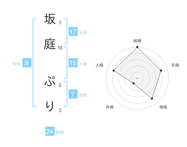 坂庭 ぷりさんを姓名の画数から五運を鑑定