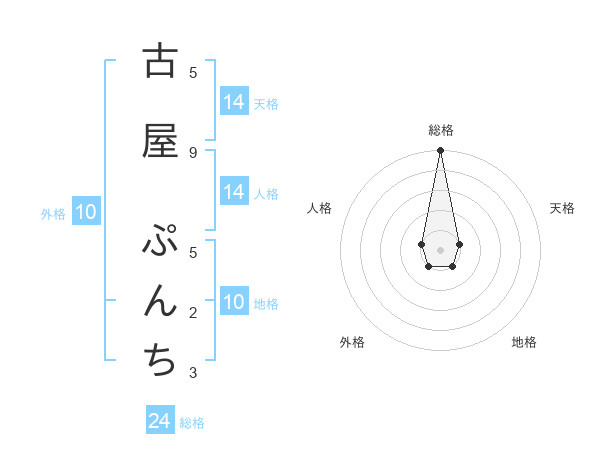 古屋 ぷんちさんを姓名の画数から五運を鑑定