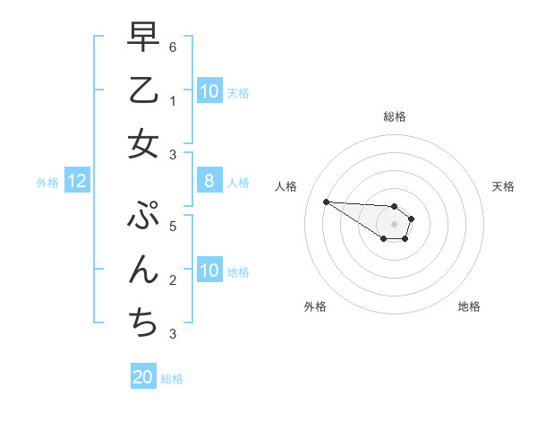 早乙女 ぷんちさんを姓名の画数から五運を鑑定