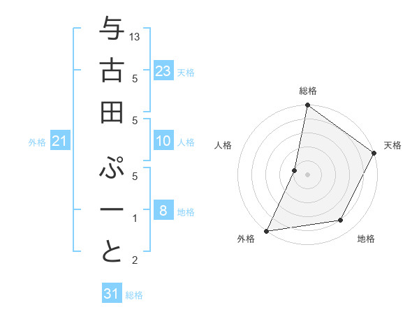 与古田 ぷーとさんを姓名の画数から五運を鑑定