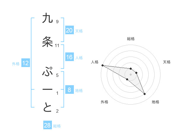 九条 ぷーとさんを姓名の画数から五運を鑑定