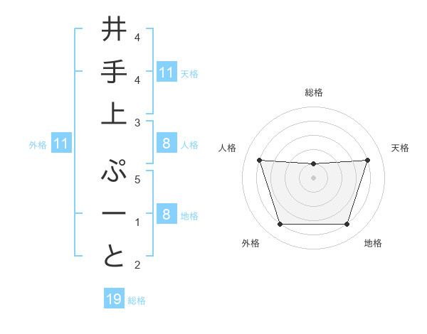 井手上 ぷーとさんを姓名の画数から五運を鑑定