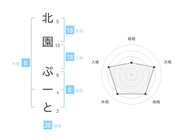 北園 ぷーとさんを姓名の画数から五運を鑑定