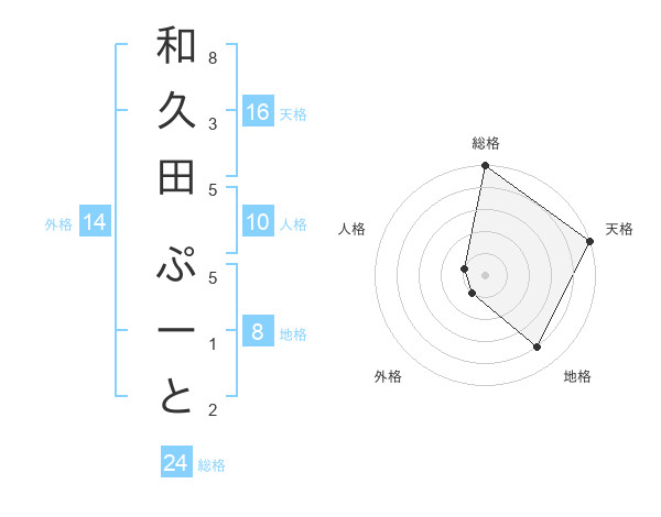 和久田 ぷーとさんを姓名の画数から五運を鑑定